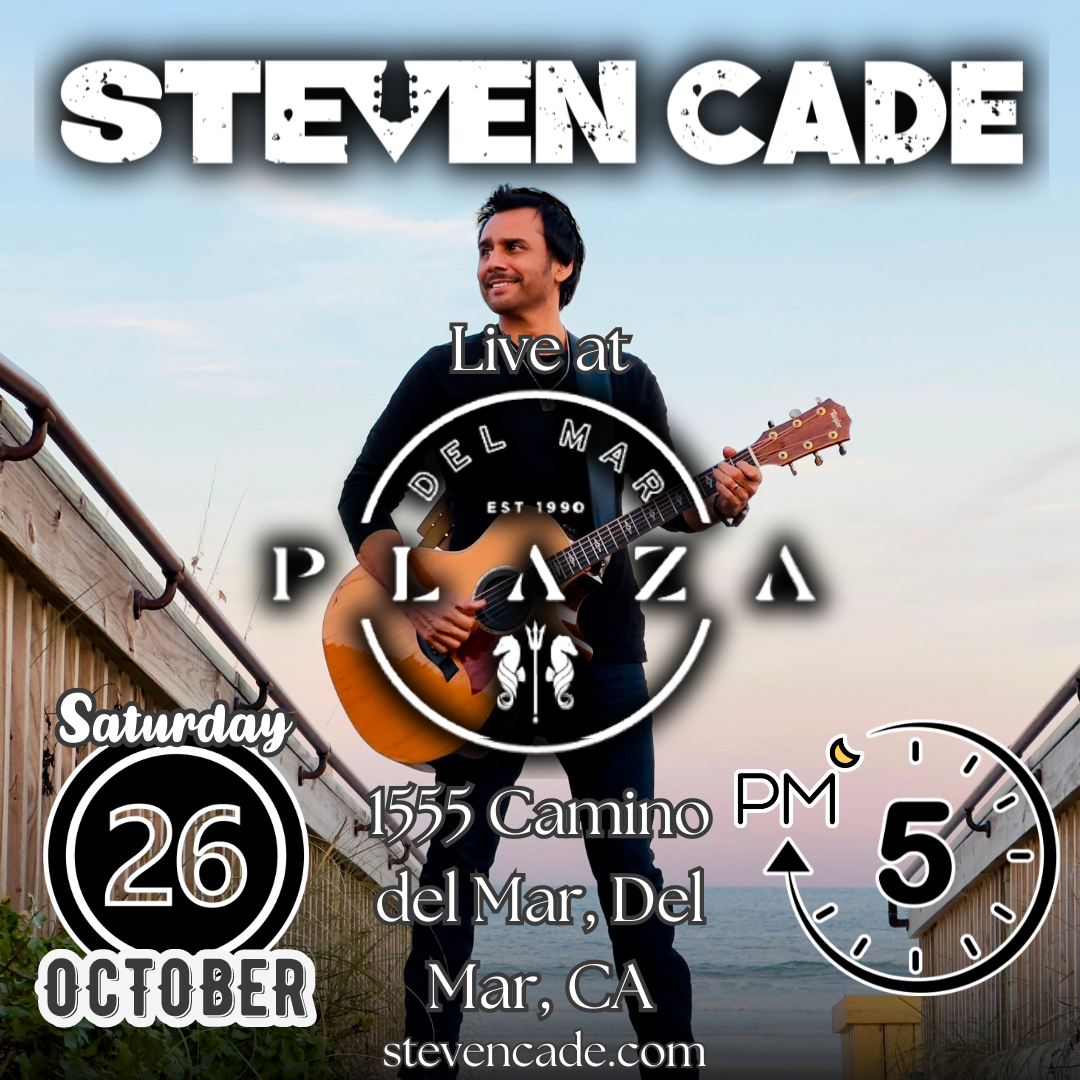 Kick back on our Ocean View Deck and soak in the sounds of Steven Cade — singing Country (Giving Guitars Tour)— from 5–7 PM. Whether you’re dining at one of our restaurants, browsing the shops, or simply taking in the Pacific views, it’s the perfect way to wind down your week at Del Mar Plaza.